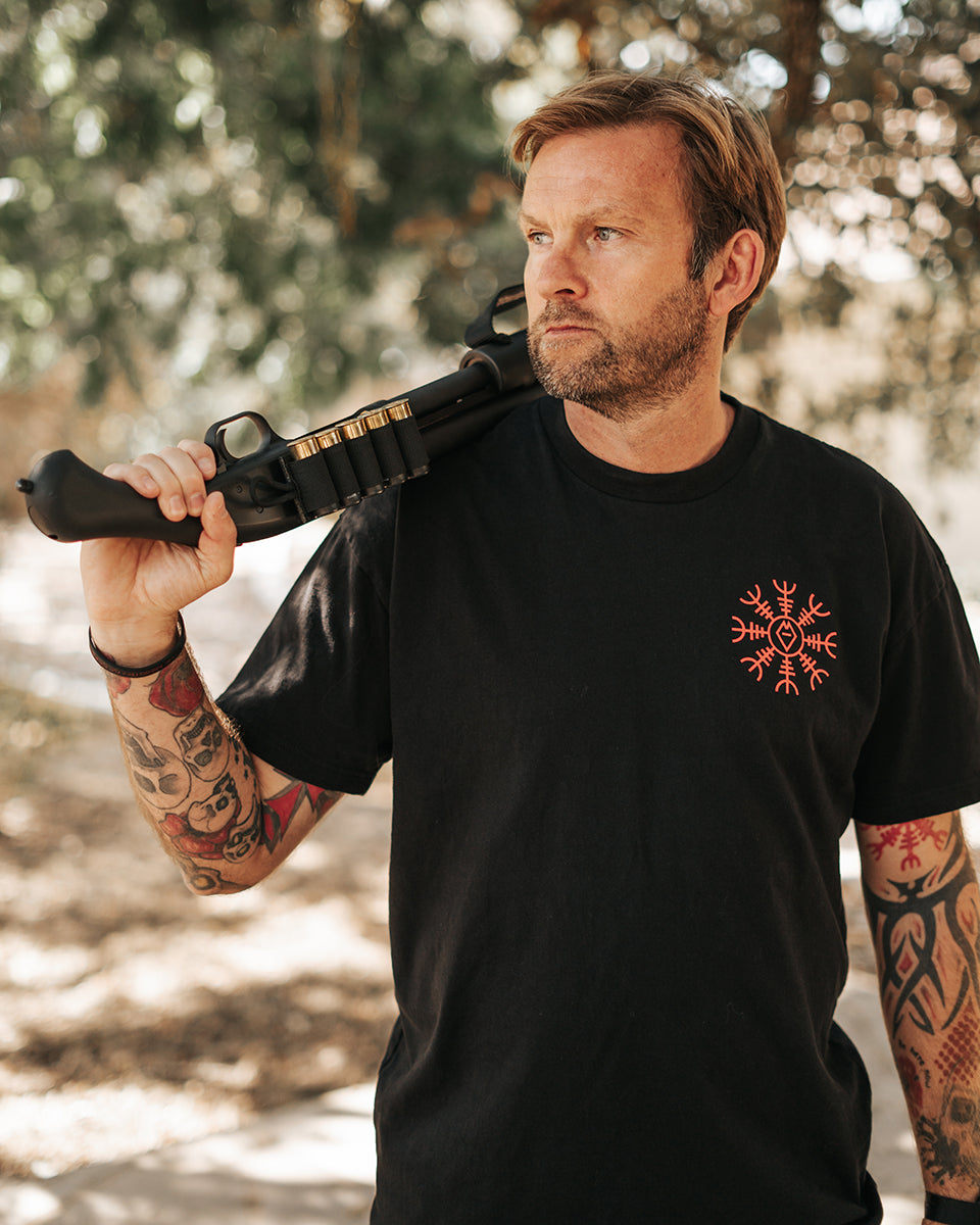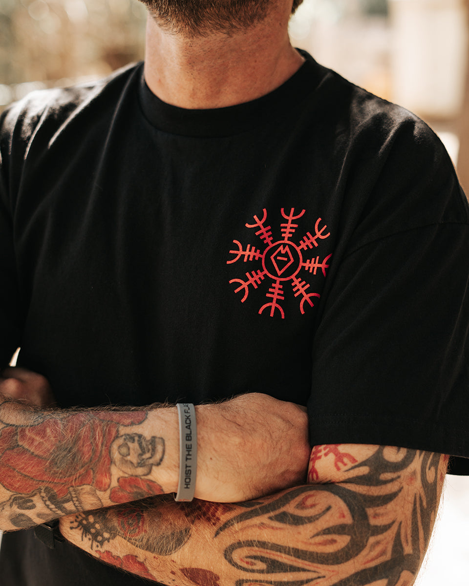 This is a Ministry Of Defence take on The Helm of Awe, a Nordic and Icelandic symbol popular amongst the military and first responders.